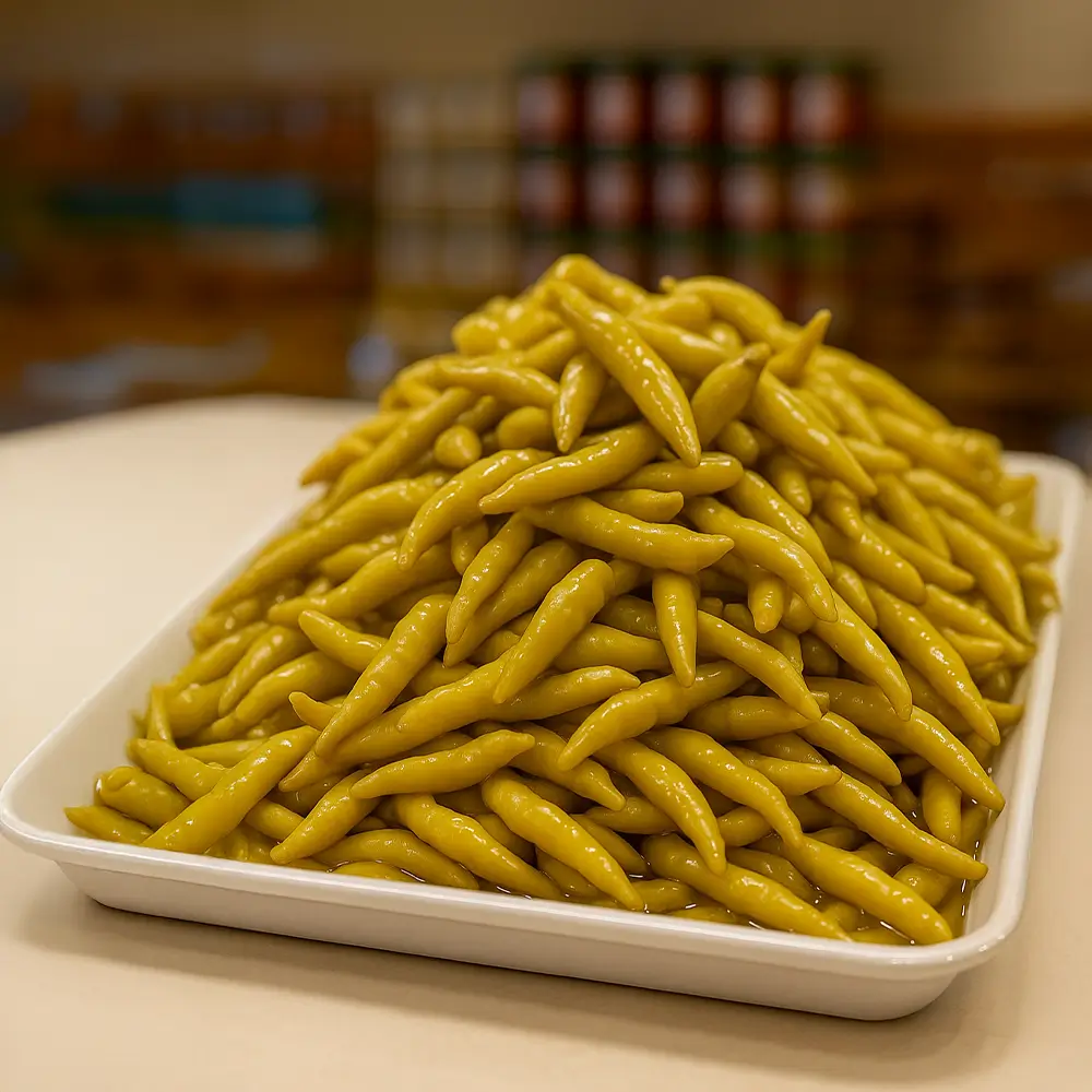 Süs Biberi Turşusu, ince ve diri süs biberlerinin geleneksel salamura yöntemiyle hazırlanmasıyla elde edilen, hafif acımsı ve ekşi aromasıyla öne çıkan özel bir turşudur. Tarihi Kemerburgaz Turşucusu olarak Süs Biberi Turşusu ürününü en ucuz satış fiyatları ile sizlere sunuyoruz. Canlı rengi, kıtır yapısı ve lezzetiyle sofralara farklı bir tat katar.